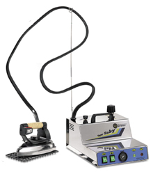 Generador de vapor para planchado semiindustrial con caldera de acero inox. de 1,5 litros y plancha de mano industrial. |